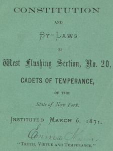 The Cadets of Temperance comprised the youth branch of the Sons of Temperance, the most widely known national temperance organization, and was founded in 1842 in New York City. An exclusive group of men who promoted mutual aid as well as abstinence from alcohol, members sought “virtue, morality, and sobriety.” The all-male membership of both groups contrasted with the widespread idea that temperance advocates were mostly women.